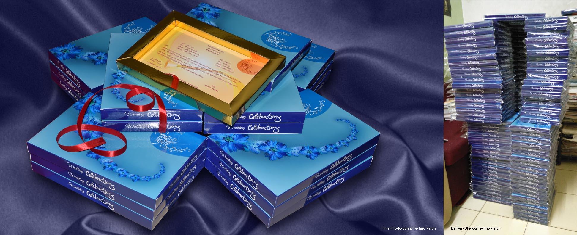 Ray family of North Kolkata wished to invite their guests with a sweet invitation on their son's wedding party. They assigned us to create an exclusive designer package. The family wanted complete production service along with concept development.