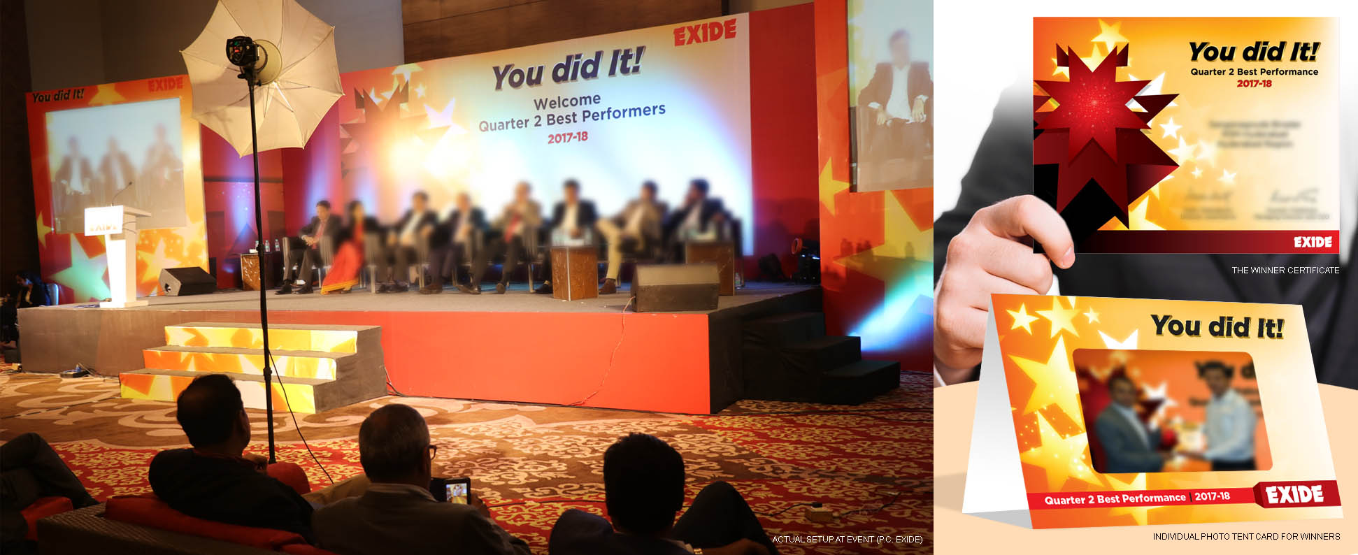 You did it! is a quarterly award ceremony that felicitates peak performers of Exide. We have been proudly associated with this national level event since it commenced in 2016, as a vendor of decor creative.